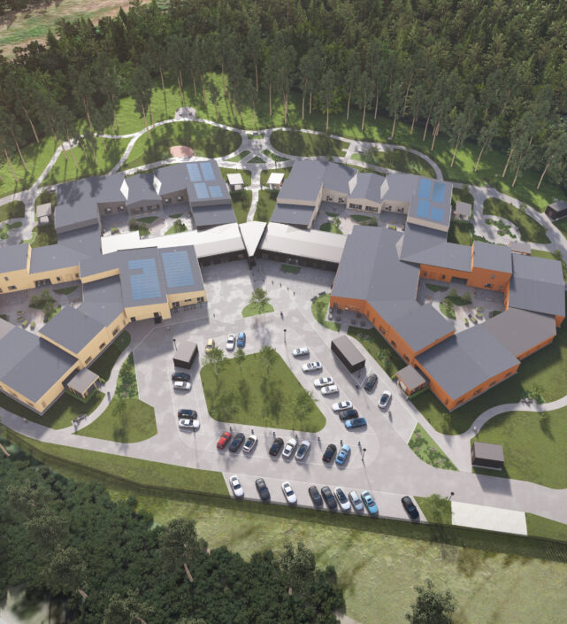 I sydöstra Eksjö, i kvarteret Snödroppen, uppförs ett nytt, modernt och välkomnande särskilt boende för äldre med demens på uppdrag av Eksjö Kommunfastigheter. Boendet rymmer 64 lägenheter i en byggnad i ett plan, organiserad kring fyra gröna innergårdar som ger dagsljus, orienterbarhet och en nära kontakt med naturen. Platsen ligger i en lugn miljö i anslutning till ett befintligt villaområde, i kanten av skogen, en stillsam och rofylld utgångspunkt för projektets gestaltningsidé.